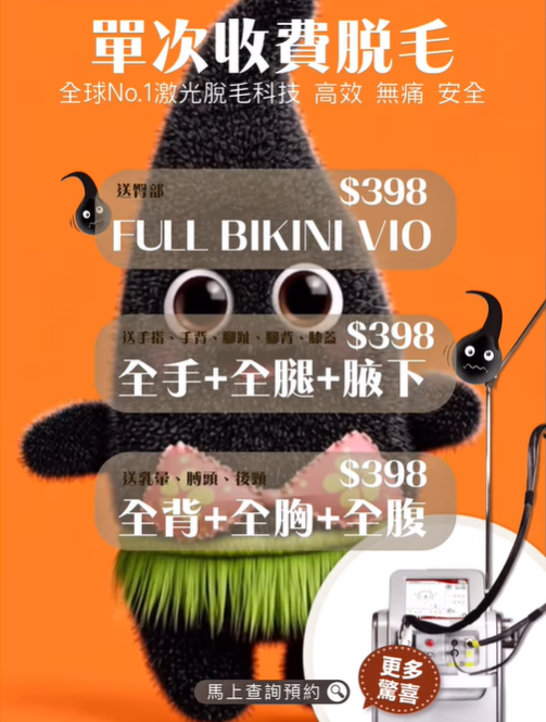 $398單次收費激光脫毛