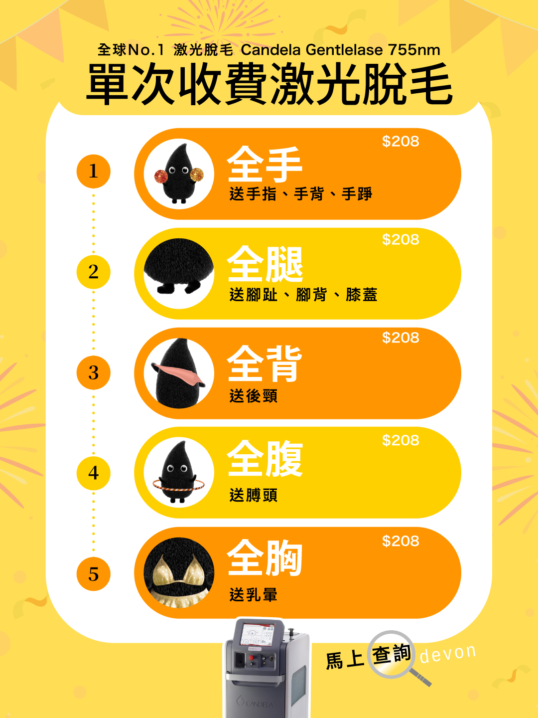 $208單次收費激光脫毛